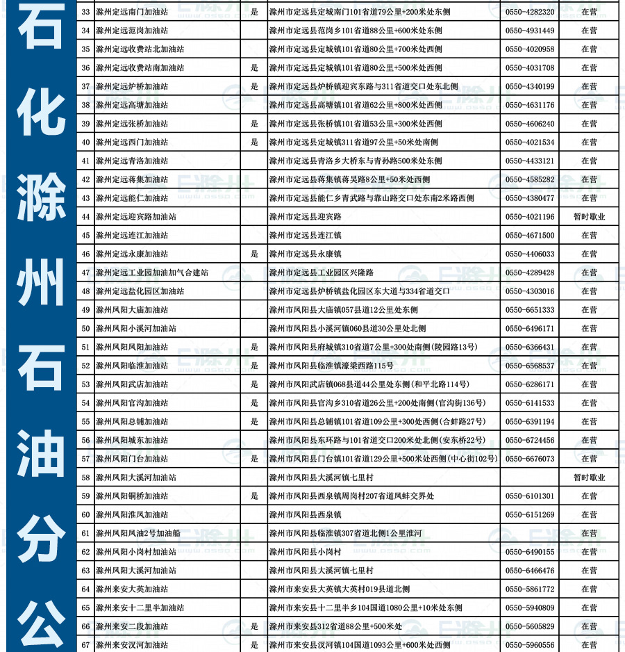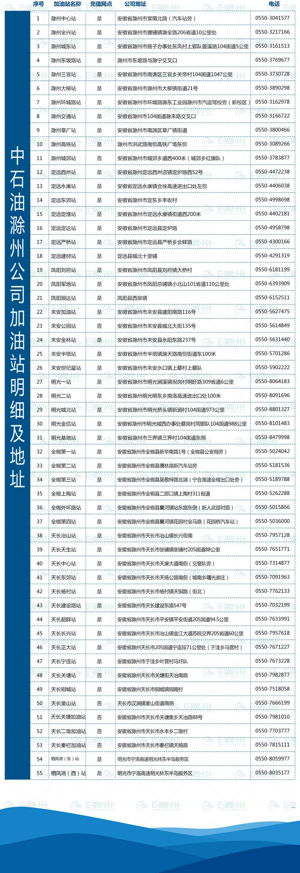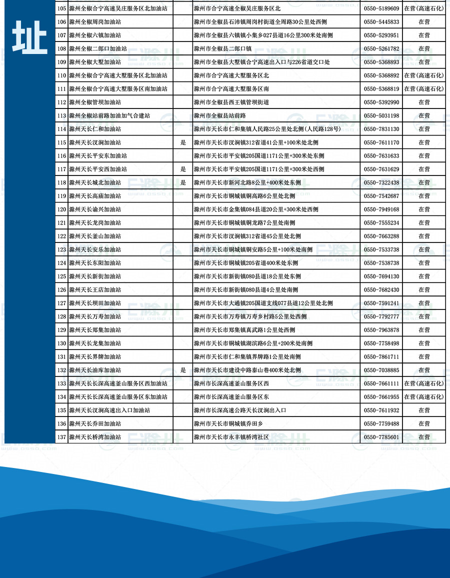 ???中石油滁州公司新增站點(diǎn):名稱(chēng):來(lái)安二站;不是充值網(wǎng)點(diǎn);地址:來(lái)安縣西外環(huán)路西側(cè);電話(huà):0550-5616066???