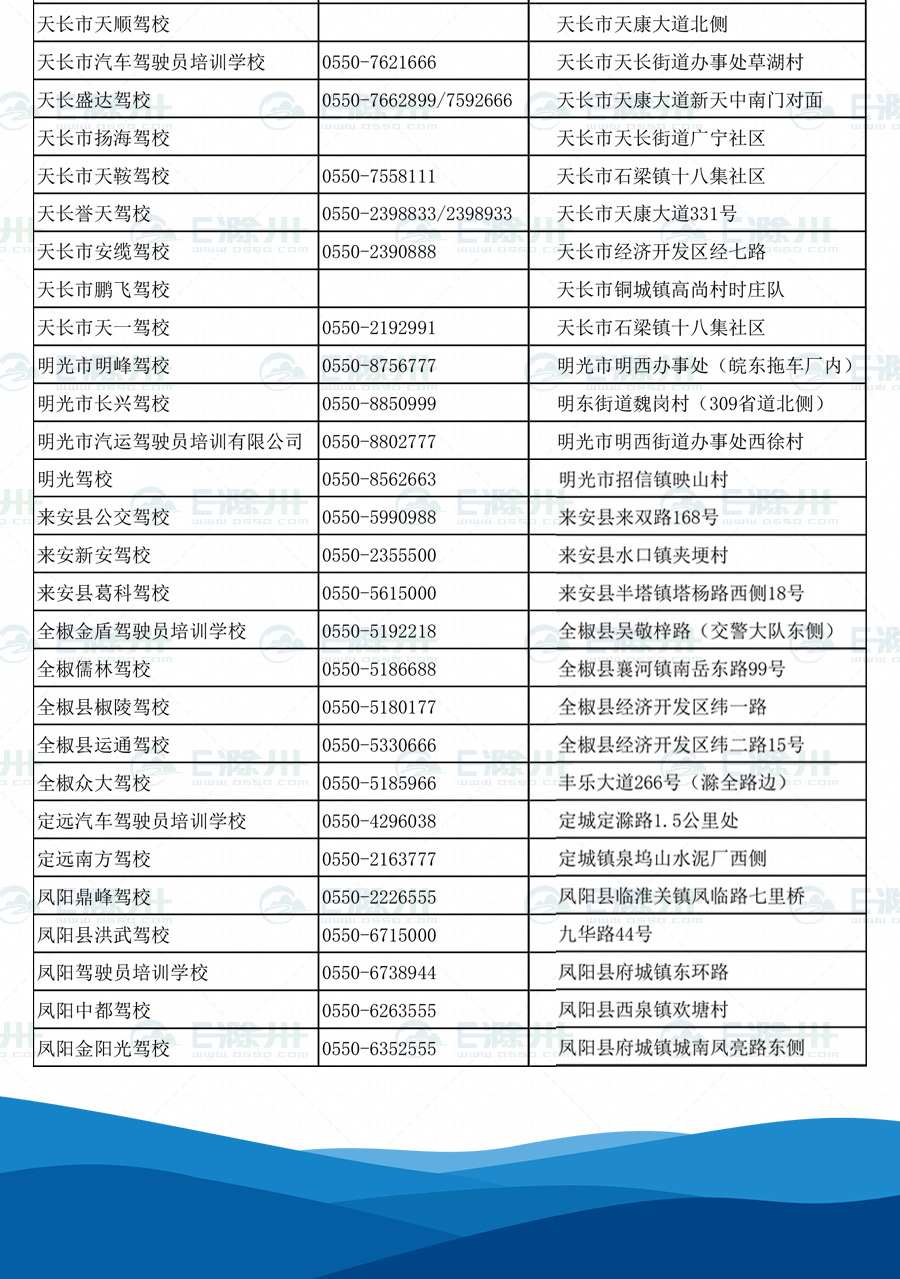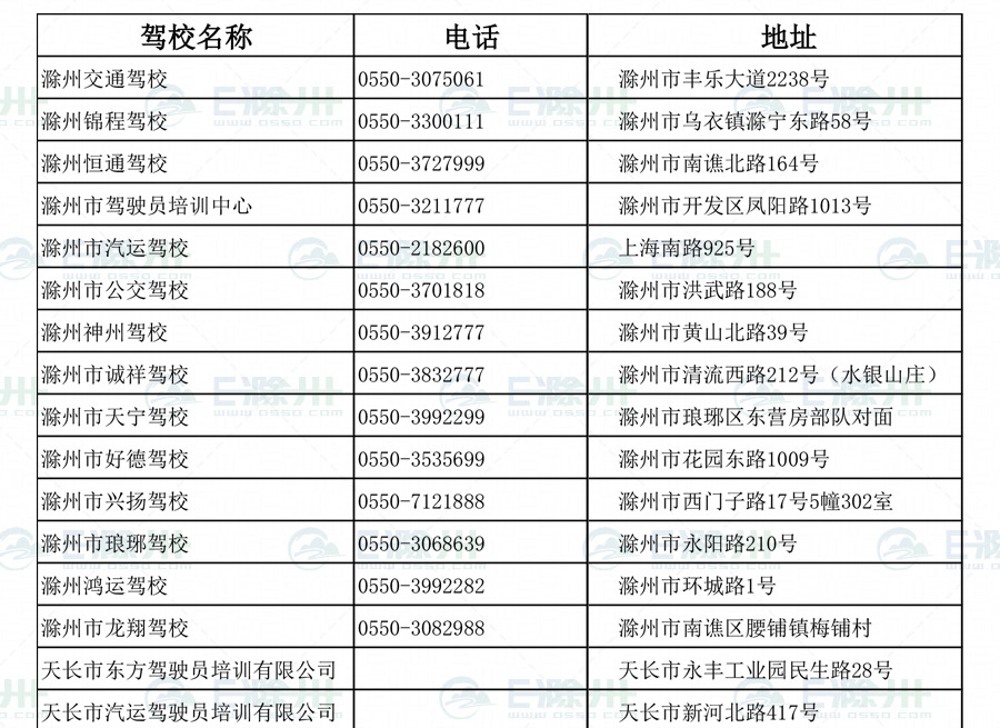 滁州及轄區(qū)縣市駕校信息
