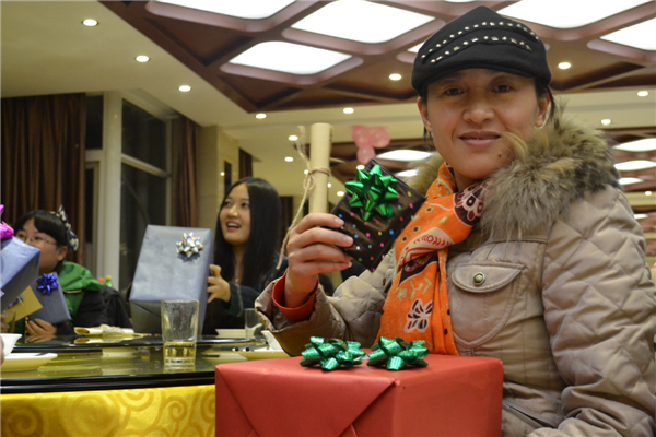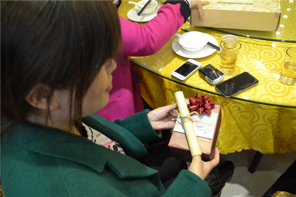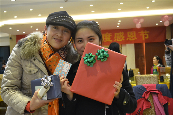 讓人啼笑皆非的蒙眼吃南瓜比賽結(jié)束之后,緊接著便是感恩節(jié)的主題活動——感恩送禮環(huán)節(jié)。大家互送禮物,相互擁抱,用最溫暖的方式表達(dá)著彼此之間的感恩之情。