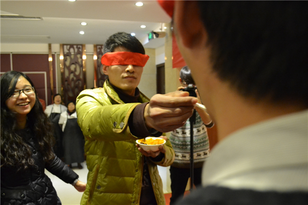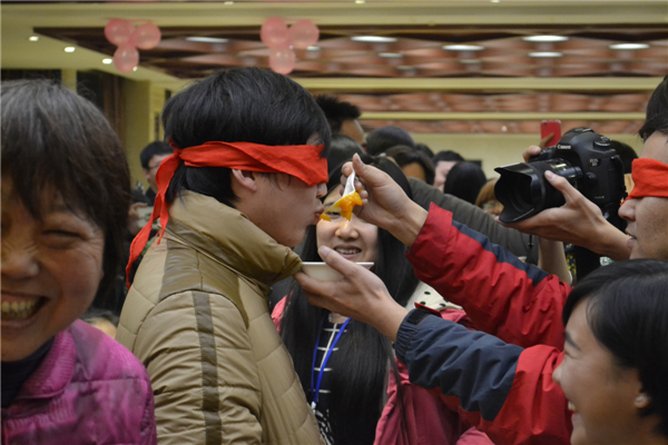 蒙著眼睛吃,蒙著眼睛喂,看誰吃的快