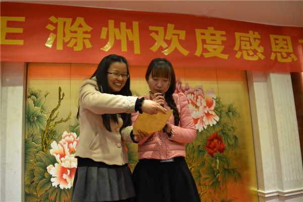 感恩節(jié)是一項(xiàng)愉快的慶祝活動,是一個家庭團(tuán)聚的日子,是好友重?cái)⒂亚榈臅r刻。對平日工作在一起的小伙伴們而言,過感恩節(jié)更是對過去一年來的生活和工作的回顧和總結(jié)。為了讓全體員工在這個溫馨的節(jié)日里,延伸感恩的意義,用實(shí)際行動對家人、同事、朋友、公司......表達(dá)濃濃的感恩之情,為了讓全體員工過一個快樂、有意義的感恩節(jié),2014年11月27日晚,E滁州網(wǎng)站舉辦了溫馨而又快樂的歡度感恩節(jié)活動。