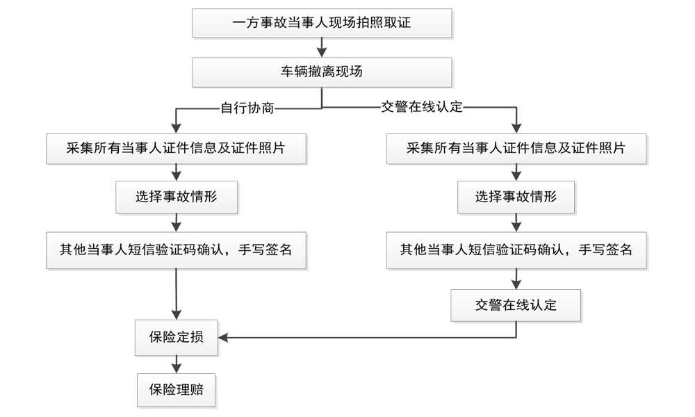 (三)當(dāng)事人撤離現(xiàn)場后,可以自行協(xié)商確定事故責(zé)任。對(duì)于自行協(xié)商成功但未采用互聯(lián)網(wǎng)在線快處快賠模式進(jìn)行在線處理的,當(dāng)事人應(yīng)當(dāng)?shù)绞鹿时kU(xiǎn)理賠服務(wù)中心進(jìn)行后續(xù)事故處理及財(cái)產(chǎn)損失評(píng)估;對(duì)于自行協(xié)商不成的,報(bào)警等待民警處理。