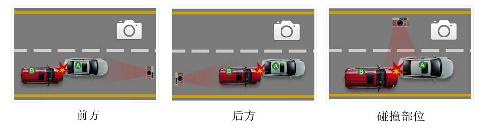 如下圖所示,在機(jī)動(dòng)車行駛方向前方、后方,以及碰撞部位至少各拍攝一張事故現(xiàn)場照片,但照片總數(shù)不超過6張。照片應(yīng)當(dāng)能夠清晰辨別機(jī)動(dòng)車號(hào)牌號(hào)碼、道路標(biāo)志標(biāo)線。